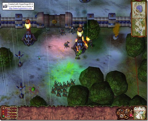 Following the time-honored Starcraft school of RTS design, Dark Planet features three very different races. There are the Terrans and the Zerg, except here they\'re called the Colonists and the Dreil. There are also the Sorin, a society of samurai lizards. These races are nicely differentiated, with separate resource requirements, distinct artwork, and entirely unique units and special abilities. There are four resources on the map, but some of them are unnecessary for some races. For instance, the Sorin have no use for crystal, but the Colonists and Dreil will have to compete for it. In addition to two basic resources for building structures and units, each race has a third resource that powers research, spell abilities, and advanced buildings. The Colonists get this by gathering energy from thermal vents, and the Sorin get it by stationing their worker units at an altar to pray. But the Dreil can get it only by attacking enemy units with spitting bugs that wrap their victims in cocoons. The cocoons then have to be carried back to base with special beetles. This forces the Dreil to be aggressive if they want to develop their more advanced units and technologies. This game has a better replay value then Star Crat and other RTS games.